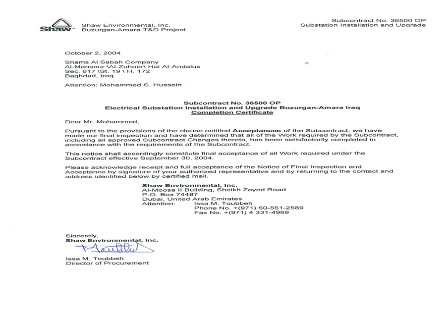 Registered in Iraq, SAS, the Flagship of the Group, Core business is EPC Contracting for Power Transmission, Distribution and Power Generation Plants.